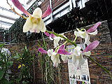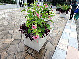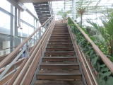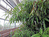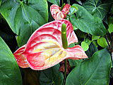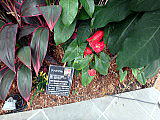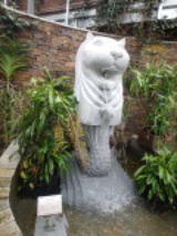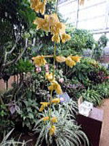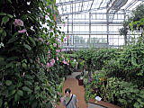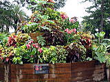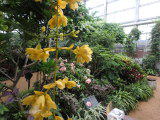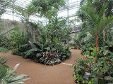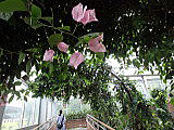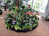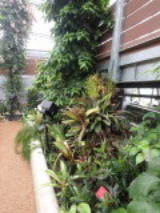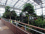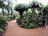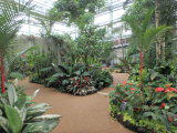 | 平成28年3月26日にリニューアルオープンしました。床面積610㎡、高さ14.7mの屋内には、旧温室から移植したマンゴ-(国内最大級)、リュウビンタイ、ビヨウタコノキ等の他に新たに植栽したブーゲンビリアやプルメリアなどの美しい亜熱帯花木があり、年間通して彩り鮮やかな「トロピカルフラワーガーデン」となっています。 温室西側にはシンガポール植物園との姉妹植物園50周年を記念してマーライオンの像が設置されています。 |