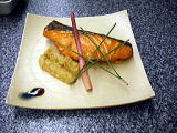 お肉料理 秋田県産ポーク肉の味噌味焼き マコモ茸のフライ添え 大根おろしソース |