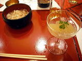 | お食事 温かい稲庭うどん デザート ラフランスのラコンボード ワイン風味ゼリー添え |