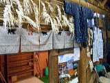 | 古い時代の家族4?5名が生活出来るアイヌ民家を再現したアイヌ生活記念館「ポンチセ(小さい家)」には、生活用具や衣服などアイヌ民族の暮らしぶりが偲べる民具が展示されています。明治以降の同化政策により、アイヌ語を話す事を禁じられ狩猟採集漁猟の生活は一変し、和人と同じ生活を余儀なくされ、生きてきたアイヌ民族、その生活用具には厳しく時に優しい自然と共存した祖先の生活の知恵がたくさん感じられます。その中をのぞいてみると、家族が囲炉裏を囲み語らい祈りを捧げていた時代が浮かんでくるようです。フチ(お婆さん)からアイヌの話を聞く事もでき、自然を愛し、自然と共に暮らしてきた先住民族の心を感じとる事ができます。 | |||