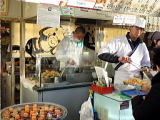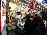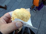 浅草寺から三軒目。あげまんじゅうの実演販売のお店です。浅草九重のあげまんじゅうは、国産小豆を原料に、ほどよい甘さのまんじゅうを三種類の高級油をブレンドし、絶妙な油温でカラッと揚げています。